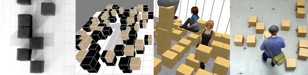 The survey data was collected with physical cubes on paper, seen here, next to a sample of the collected data. With students in the MRes Information Environments course I was running at the time, we then explored this approach in Second Life, and in a gallery installation. More info here.